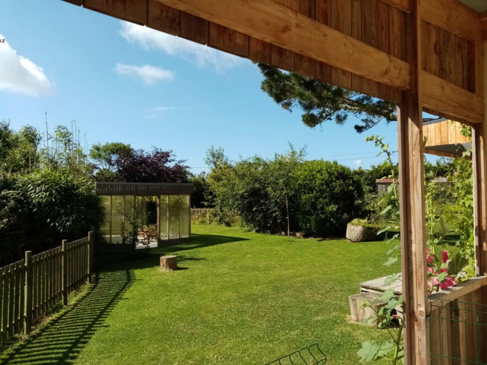 Nichée dans un écrin de verdure à proximité des plages, cette maison de plein-pied d'une capacité d'accueil de 4 personnes est disponible toute l'année à location